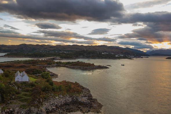 洛哈尔什教区凯尔Kyle of lochalsh是天空岛的一个门户小村,在这里可以遥望到天空岛的到岛中之桥。 苏格兰铁路至此抵达最西端的终点,三面环海的火车站别具一格。