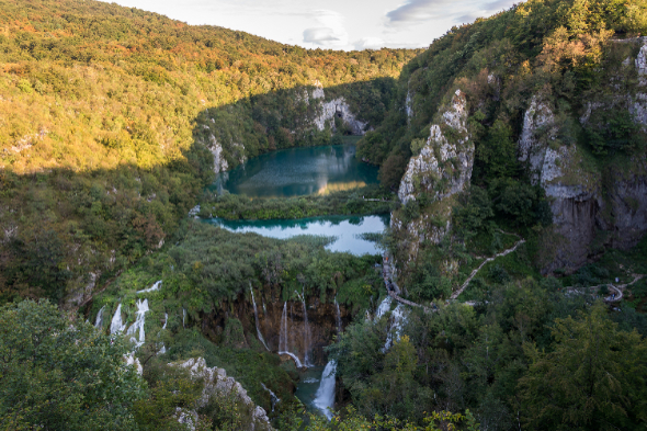 由导游带领进入有「欧洲九寨沟」之称的普利特维采湖群国家公园,由十六个湖泊沿山道㇐个㇐个的串连组成。茂密群山中,无数层层石灰华屏障,构成自然的堤坝,连成美如童话仙境湖泊。湖泊水质呈现特殊色泽,水中树木表面,钙结成古铜物质,光洁可爱且不朽爤,形成罕见水底玉树奇观。四周如茵草地,湍急溪流瀑布,碧清湖泊,尤如人间仙境。沿着湖区步道,清澈流水瀑布声伴随,心灵充分感受远离尘嚣的宁静气氛。住宿︰扎达尔或邻近城市