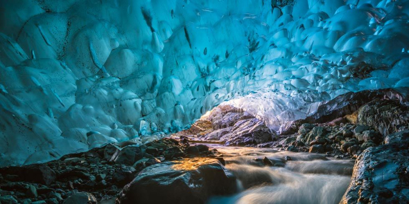 蓝冰洞是纯天然形成的罕见自然现象,只有在冬季气温降至零度以下,冰层下的河水结成冰时,才有机会观赏到。每年不同的地点会形成风格迥异的洞穴。视当时的条件和安全情况而定,我们会在行程中有选择性地参观一座天然冰洞。