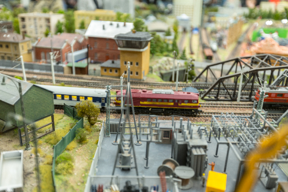 这个位于仓库城内的微型小世界,是世界上第一大铁路模型场景。占地1300平方米,遥控着930条模拟铁路线,以1:87的比例涵盖了全世界几乎所有的火车线路。在展示的8个房间中,游客通过一条长长的甬道穿梭在各个房间之间。每个房间约100到300平方米,各有一个主题。比如以国家命名的奥地利、美国;以地貌风景命名的瑞士阿尔卑斯山、斯堪的纳维亚风光;以及以先进的交通系统命名的哈茨山高速铁路露台和虚构城市“Knuffingen”的机场监管系统。