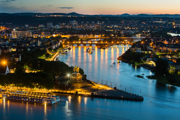 在德国莱茵河与摩泽尔河交汇处,坐落着千年古城科布伦茨。这里的核心地标是“德意志之角”,壮观的威廉一世雕像俯瞰着两河交融。乘缆车凌空跨越莱茵河,即可登上雄踞山顶的埃伦布赖特施泰因要塞,这里能将古城与河谷的壮丽全景尽收眼底。下山后,漫步于遍布广场、喷泉与精致建筑的浪漫老城,感受悠闲气息。作为世界遗产莱茵河谷的门户,科布伦茨是体验河谷风光的完美起点。您可以登上游船,欣赏两岸连绵的葡萄园与古堡;更别忘了在古老的酒窖里,品尝一杯当地优质的雷司令白葡萄酒。