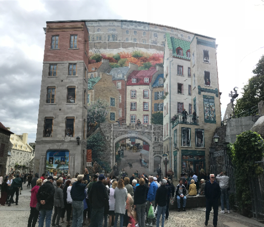 5.古城立体壁画:是魁北克市最具代表性的城市艺术景点之一,通过逼真的立体绘画手法,将魁北克400多年历史中的重要人物、事件与日常生活场景生动呈现。仿佛一部“露天历史画卷”。具有极强的视觉冲击力和拍照效果,是游客打卡的热门地点。